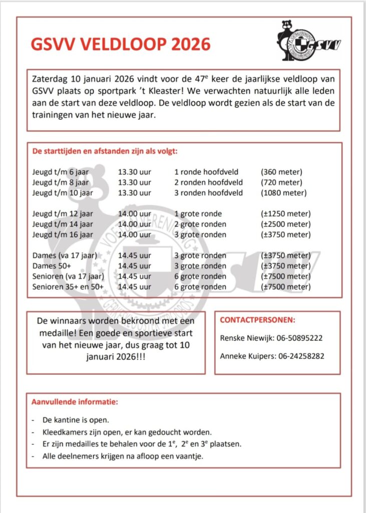 Maandag is het zover: de traditiegetrouwe GSVV Veldloop! πŸƒβ€β™‚οΈ Check de flyer voor alle starttijden.